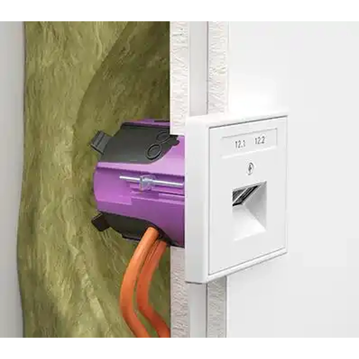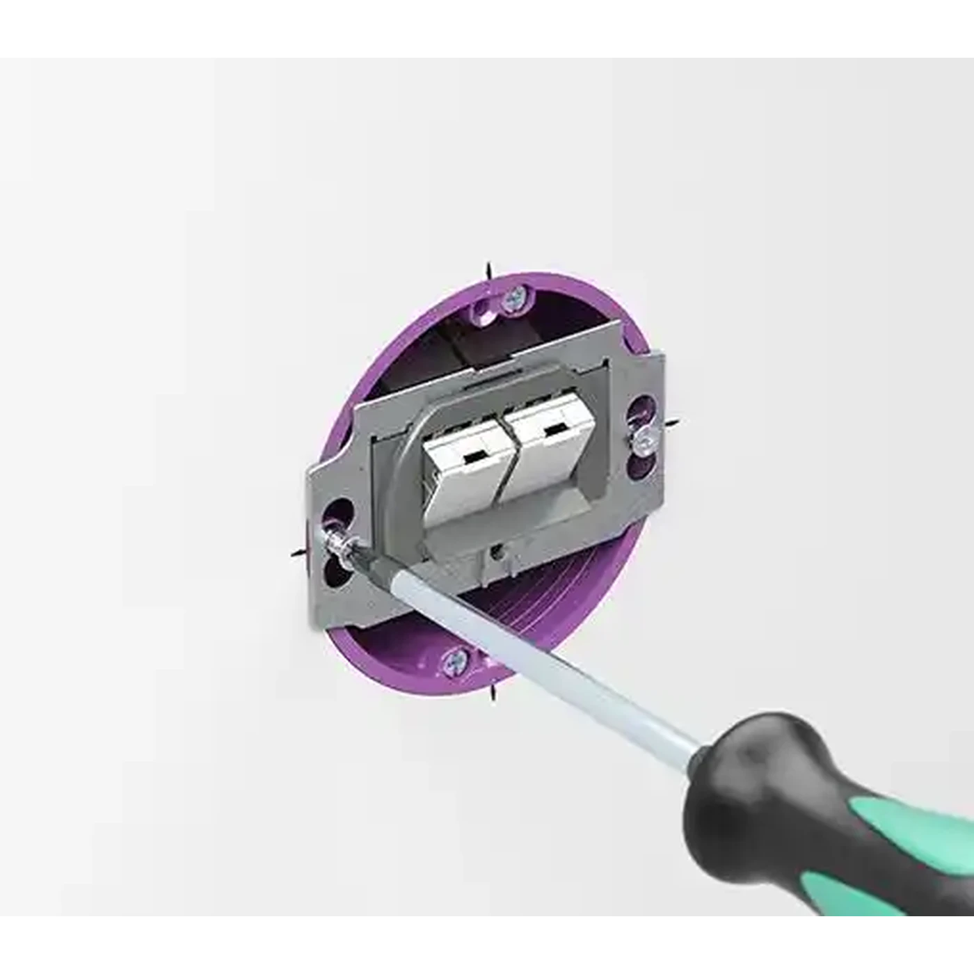 Introduceți cutia de conexiune O-range ECON® Data cu un singur grup în deschiderea de instalare, utilizați marcajul central pentru aliniere și strângeți șuruburile de fixare. |