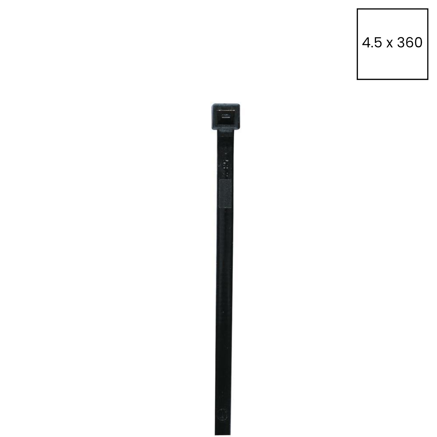 Coliere de cablu fabricate din poliamidă (PA 6.6), culoare neagră, dimensiuni 4,5 x 360 mm. Permite organizarea cablurilor cu diametrul cuprins între 4.5 și 360 mm, forța minimă de menținere de 80 N. Fără halogen, stabilizat UV, auto-stingător, conform clasei de inflamabilitate UL94 V-2, rezistență la temperatură între -40°C și 85°C. Certificări: UL, RiNA, DNV, LR, Bureau Veritas.