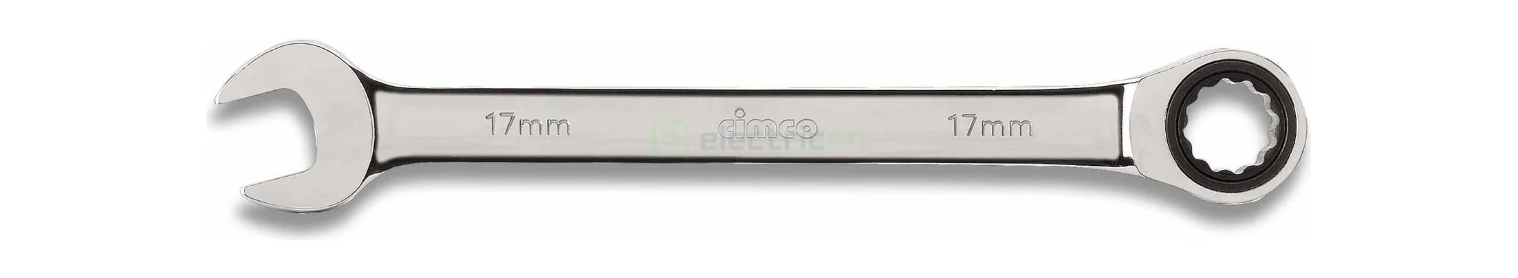 Cheie combinată cu clichet cu dinți fini, cu 72 de dinți și unghi de revenire de 5° pentru strângerea sau desfacerea rapidă a șuruburilor și piulițelor. Permite rotația la stânga sau la dreapta prin simpla întoarcere a cheii, având marcaje colorate suplimentare. Cheie cu cap deschis offset de 15° pentru ergonomie. Fabricată din oțel crom-vanadiu, forjată, călită special, lustruită, nichelată și cromată dur; dimensiune 10 mm, 13mm și 17mm.