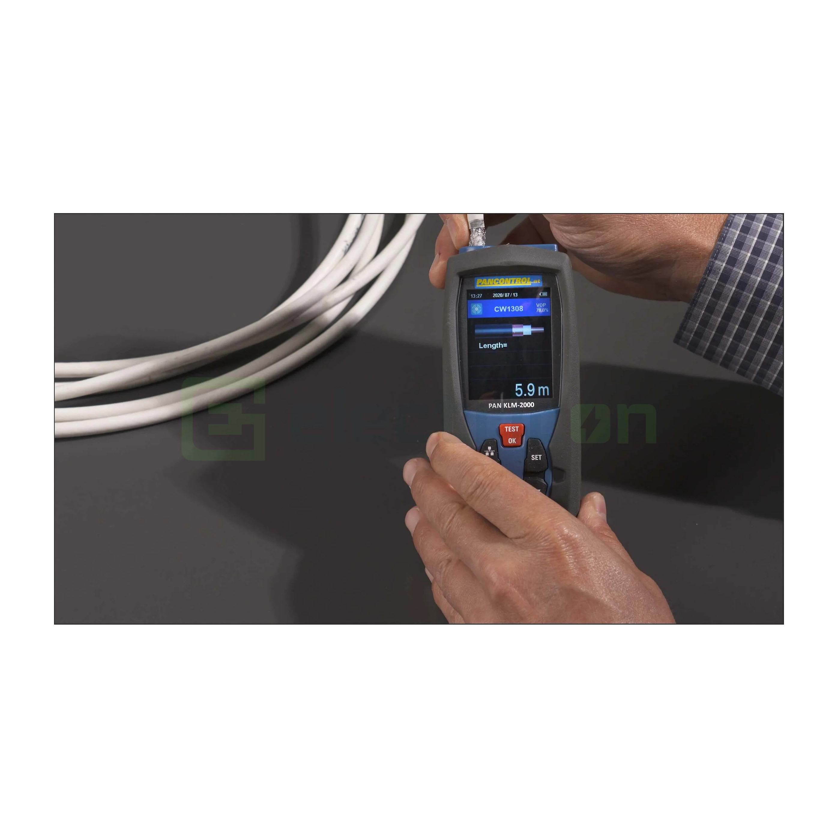 PAN KLM 2000 este un dispozitiv digital avansat, special conceput pentru profesioniștii care lucrează cu infrastructuri de rețea și cabluri coaxiale. Utilizând tehnologia de Reflectometrie în domeniul timpului (TDR), acesta permite măsurarea precisă a lungimii cablurilor între 5 și 3000 de metri . Instrumentul dispune de un afișaj color digital de 3000 de digiți, dotat cu iluminare de fundal, facilitând citirea datelor și a graficelor chiar și în medii cu vizibilitate redusă .