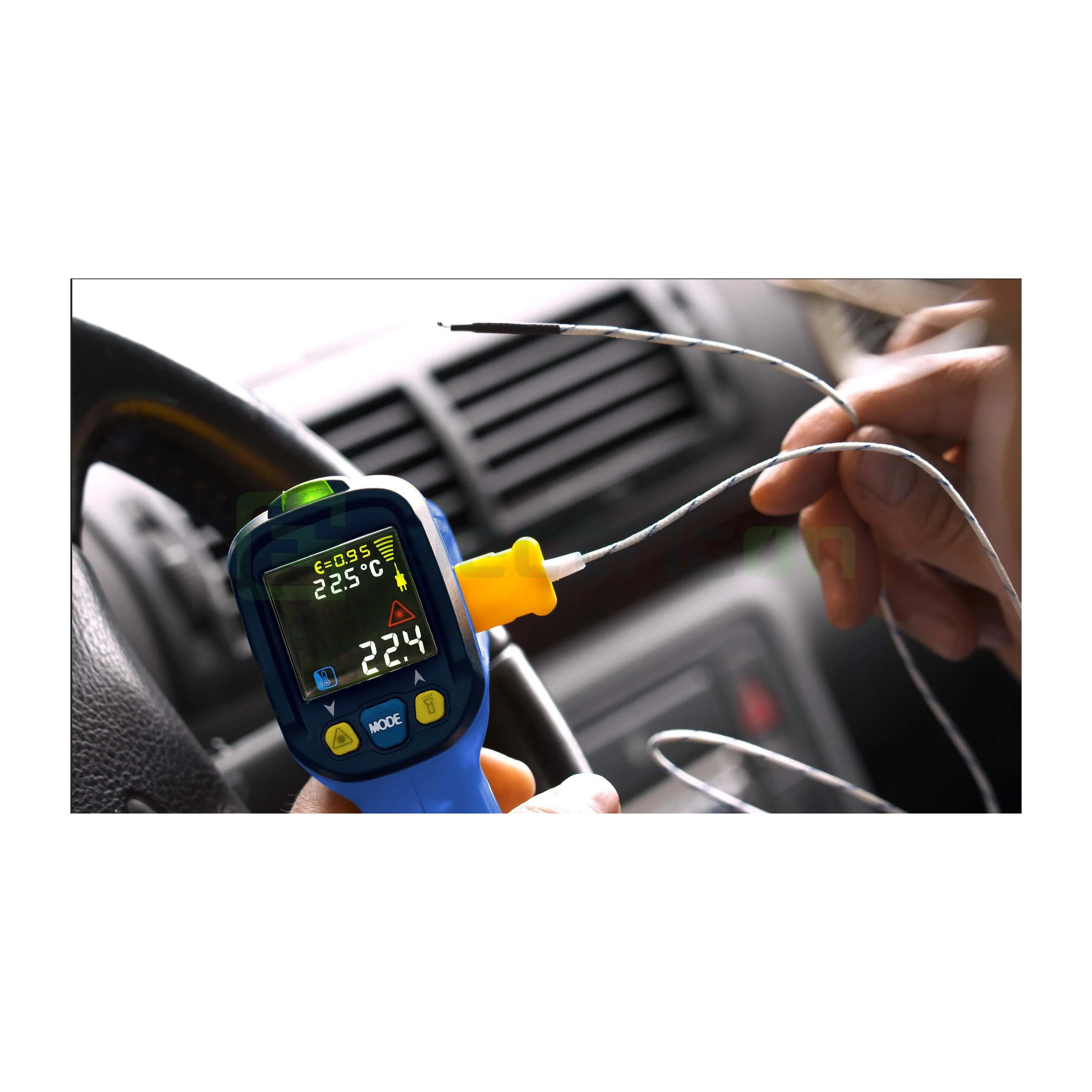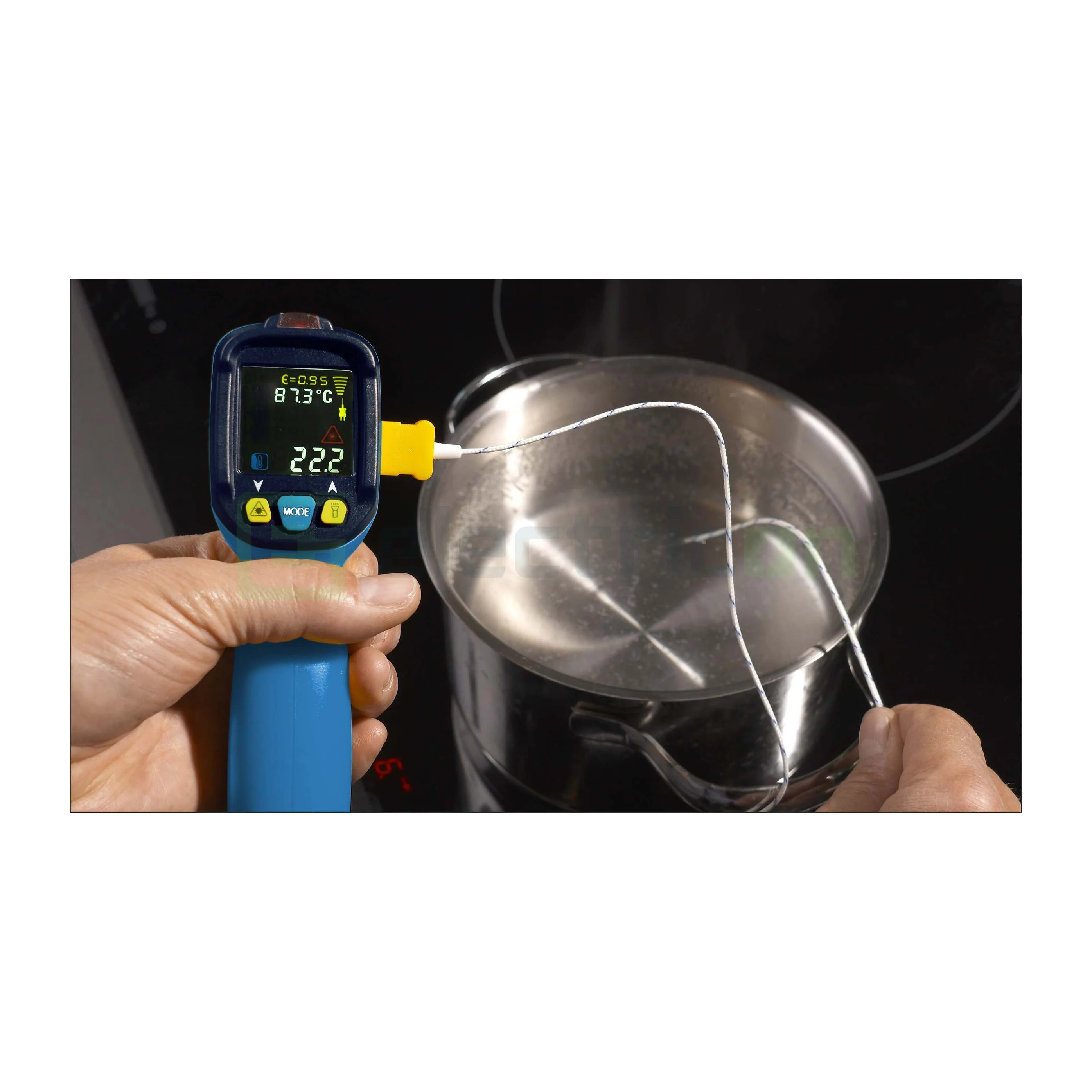 Termometrul cu infraroșu Pancontrol IR-T800+ este un instrument profesional conceput pentru măsurarea temperaturii fără contact într-un interval extins, de la -50 °C până la +800 °C, oferind rezultate precise datorită opticii 12:1 și emisivității reglabile.