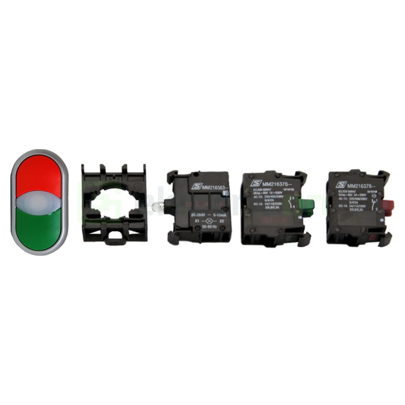 Buton comanda, dublu, luminos, verde/rosu, Schrack, MM216698