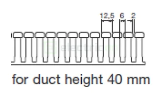 Hager HA7 (HA740100) este un canal de cablu cu fante (pieptene) având un profil plat: înălțime redusă de 40 mm și o lățime mare de 100 mm (la o lungime de 2 metri). Fabricat din PC/ABS fără halogeni (culoare gri deschis), produsul protejează eficient infrastructura, nepropagând flacăra (UL94 V0) și neemițând gaze acide la ardere. Funcționează perfect în regimuri termice dure, de la -5°C până la +90°C.