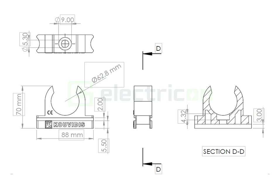 Clema MEDISOL AM Ø63 este soluția premium pentru fixarea sigurata și sterilă a tuburilor copex MEDIFLEX AM (flexibili) și MEDISOL AM (rigide) cu diametru 63mm pe suporturi in sisteme medicale critice. Tehnologia antimicrobiana KOUVIDIS integrata reduce 99% din bacteriile patogene (MRSA, E-coli, Staphylococcus aureus). Material PVC cu ioni de argint permanent asigura sterilitate pe 10+ ani. Diametrul 63mm (maxim din seria) permite fixarea cablurilor de capacitate extremă. Design robust cu mișcare de clipare ușoară și sigura - fixare mecanica fiabila fara deteriorare tubului.