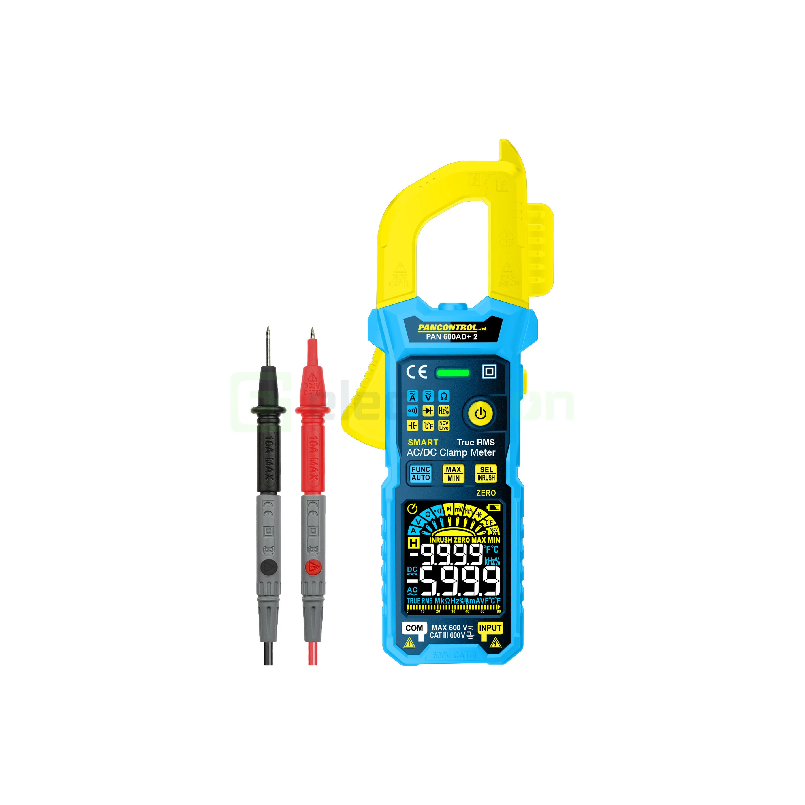Clește ampermetric profesional, PAN 600AD+ 2, Pancontrol, 600A AC/DC, True RMS – Instrument inteligent cu afișaj color și măsurarea curentului de pornire.