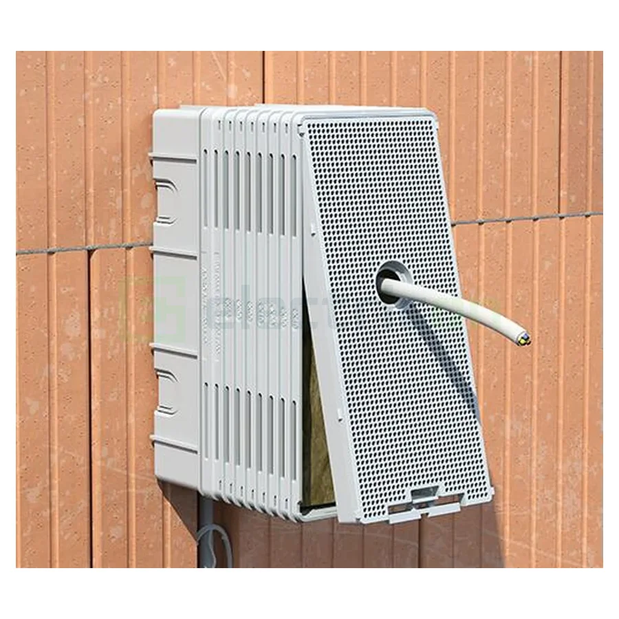 Aliniați baza carcasei vertical pe perete și strângeți cu șuruburi folosind material de fixare adecvat. |