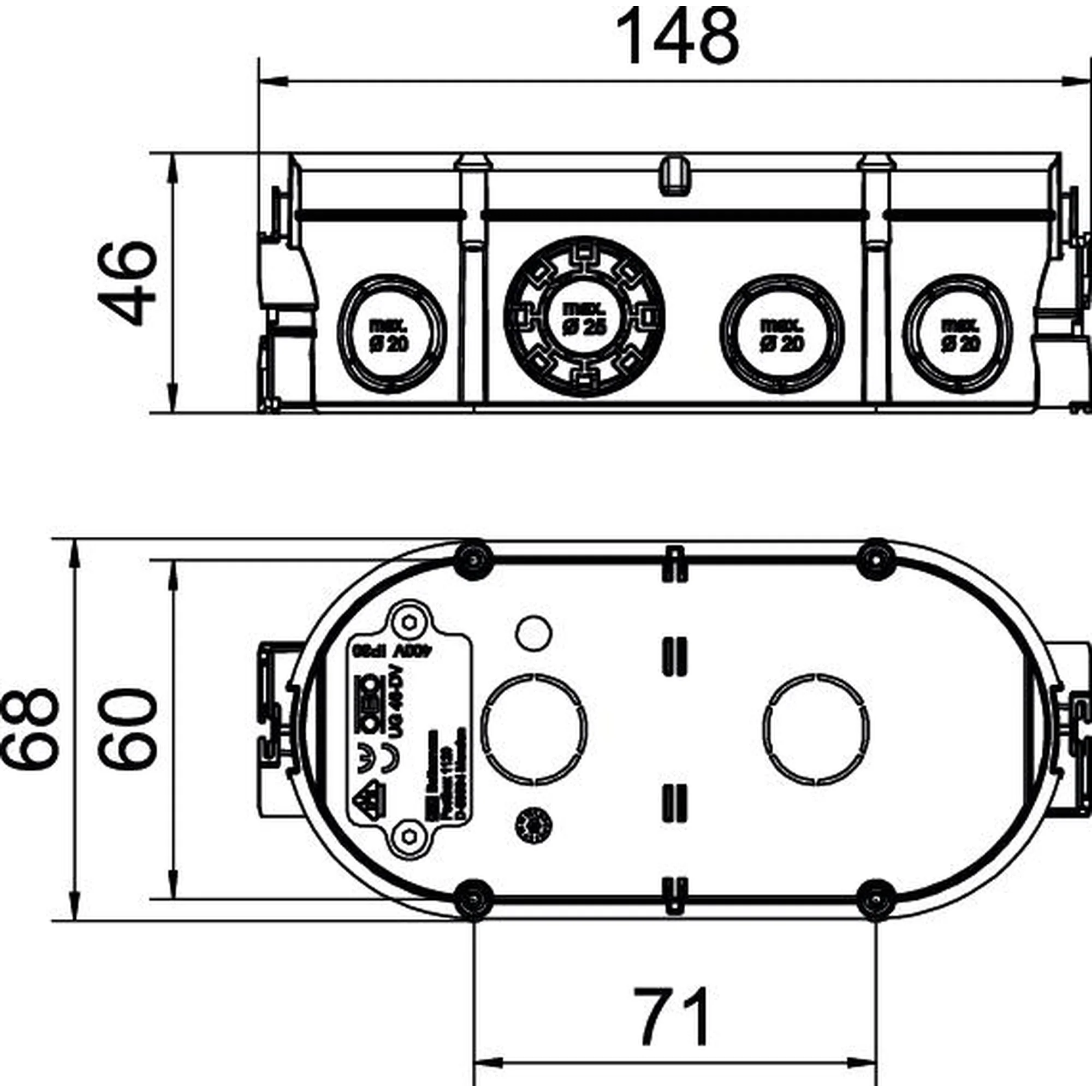 OBO Bettermann Doză aparataj dublă, sub tencuială,UG 46-DV,  2xØ60 mm,  pentru țevi 20/25 mm, OBO Bettermann 2003722