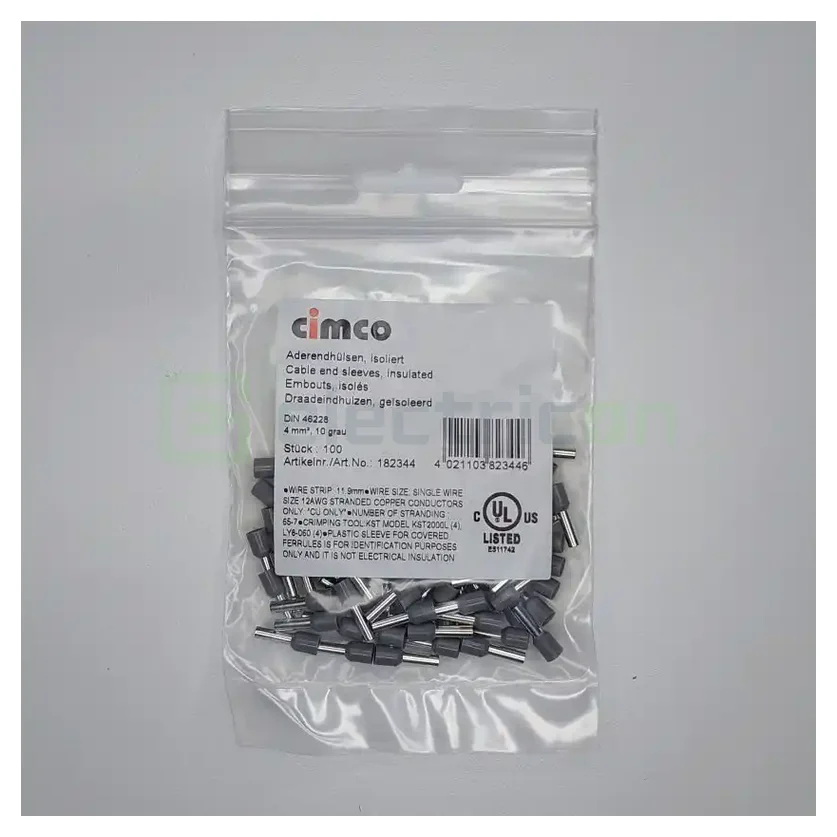 Ferulă izolată cu secțiune transversală de 4.0 mm² și lungime a manșonului de 10 mm, conform DIN 46228, partea 4, disponibilă în pachete de 100 de bucăți. Aceste feronțe sunt concepute pentru a se potrivi ușor pe conductori de cupru cu fire subțiri, prevenind deteriorarea și îmbinarea. Materialul utilizat este Cu-ETP conform DIN EN 13600, cu suprafață electroplacată cu tină și izolație din polipropilenă, având o rezistență la temperatură de la -35°C până la +105°C.
