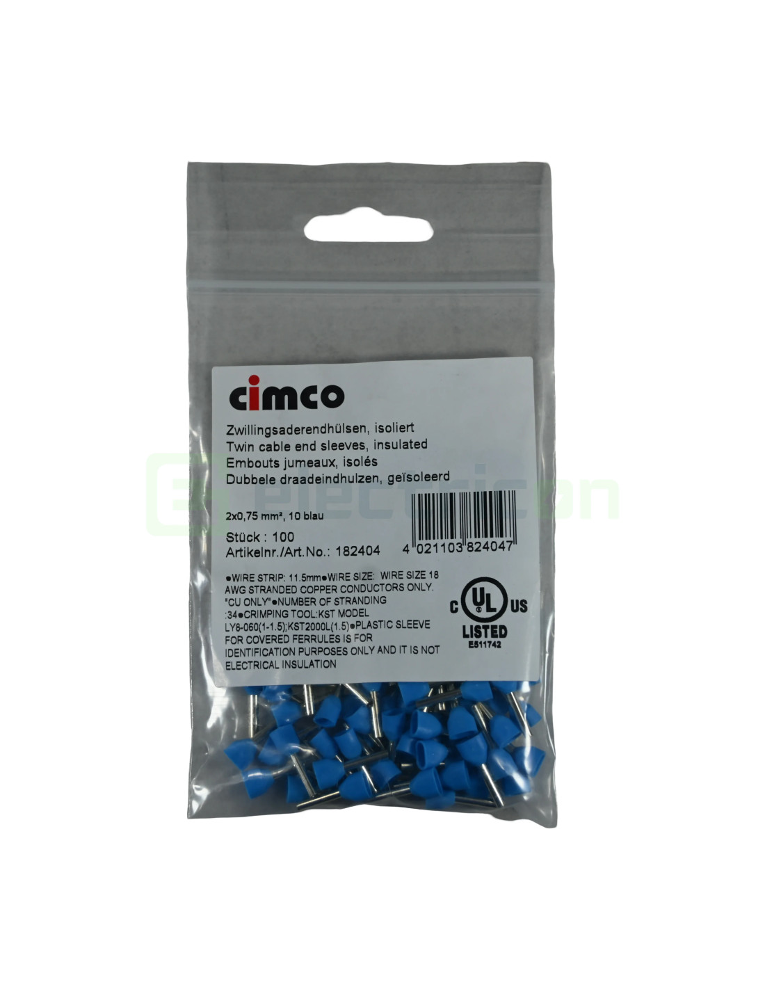 Ferule - pini - 2x0.75/10 mm - pungă - Cimco - 18 2404