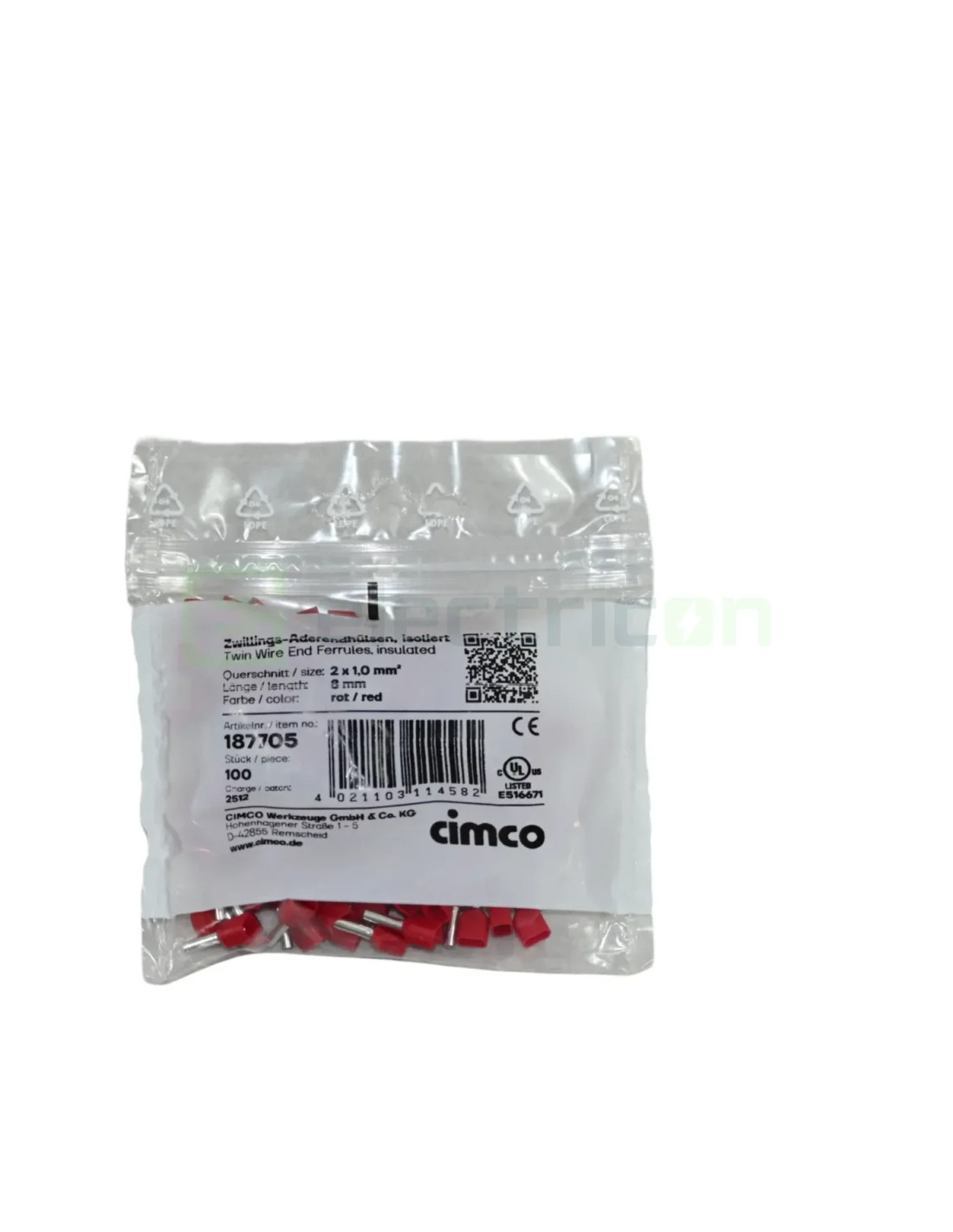 Ferule - pini - 2x0.75/10 mm - pungă - Cimco - 18 2404