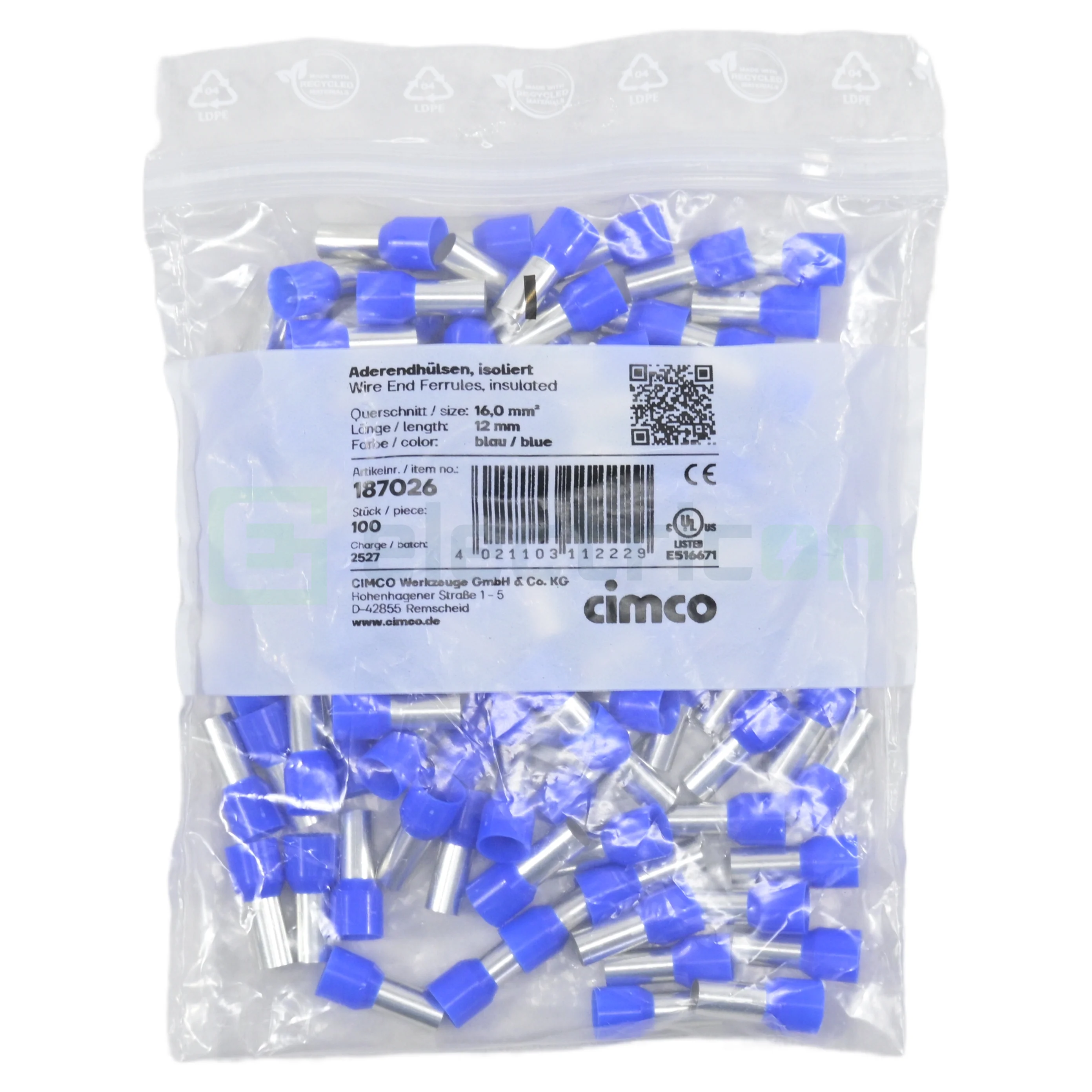 Cimco 187026 reprezintă soluția tehnică ideală pentru terminarea conductorilor multifilari cu secțiunea de 16 mm². Această ferulă izolată dispune de un manșon de contact cu lungimea de 12 mm, fiind fabricată din cupru electrolitic de înaltă puritate, placat galvanizat cu staniu pentru a asigura o conductivitate maximă și protecție anti-coroziune. Izolația din polipropilenă de culoare albastră facilitează inserția rapidă a cablului și previne scurtcircuitele accidentale.