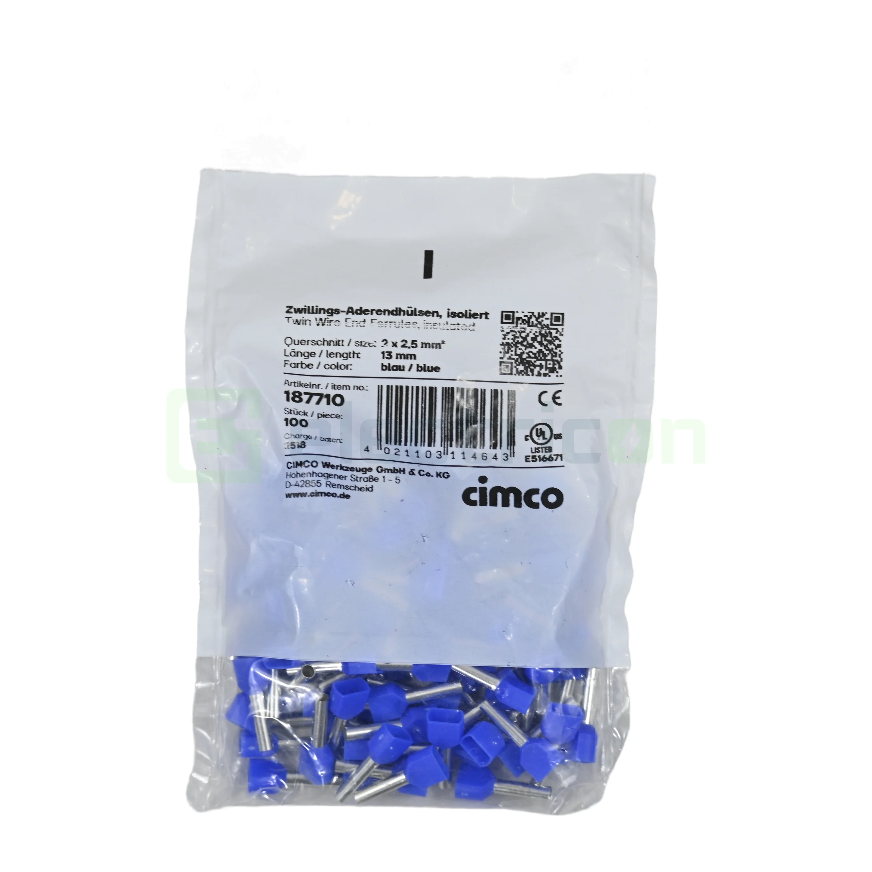 Ferule pini dubli 2x2.5/13 Cimco 187710 – soluția profesională pentru conectarea sigură și rapidă a doi conductori într-un singur terminal.