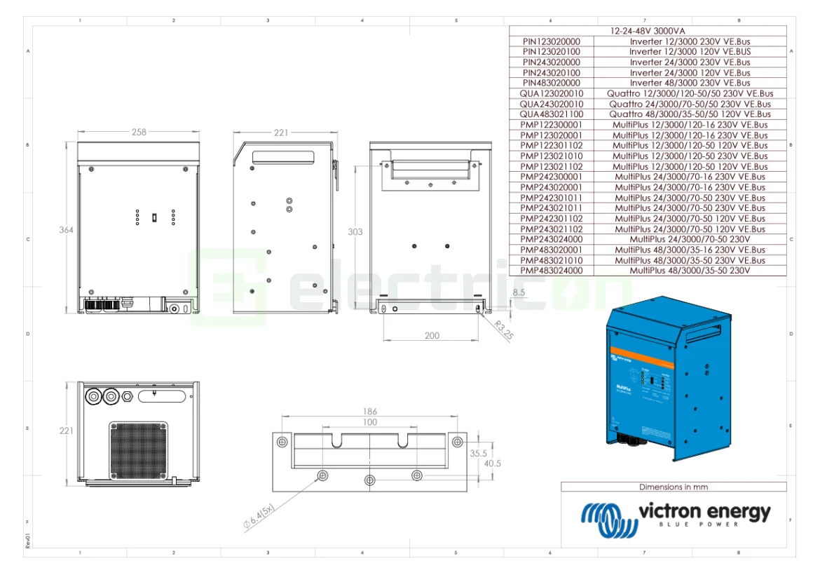 Specificații tehnice Invertor/Charger 24V 3000VA Quattro