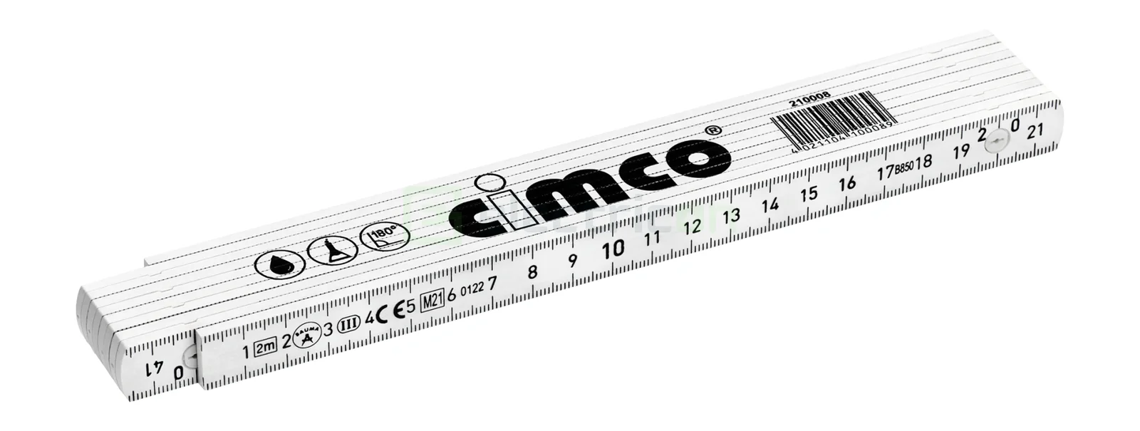 Rigla pliabilă din fibră de sticlă este rezistentă la substanțe chimice și are o lungime de 2 metri. Aceasta include un sistem patentat de blocare la 90° și indicație de unghiuri de grad pe fiecare al doilea segment (până la 180°). Este fabricată din material plastic și lemn de fag, oferind o combinație durabilă și ușor de utilizat.
