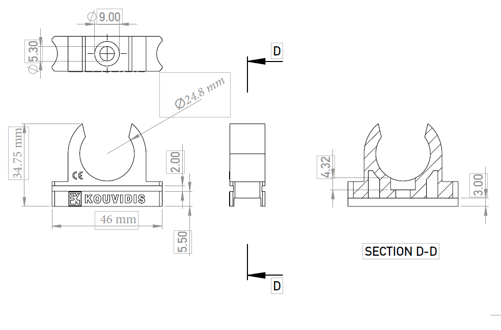 Clema KOUVIDIS Ø25 este soluția ideala pentru fixarea rapida a tuburilor copex Ø25 mm din seria SUPERSOL PLUS (rigida) și SUPERFLEX PLUS (flexibila) pe pereți in instalații ascunse. Material polipropilena (PP) premium - rezistență mecanica 320N. Design ingineresc cu sistem clipare. Ideal pentru instalații ascunse medii in gips carton, sub-plafon și pereți lemn.