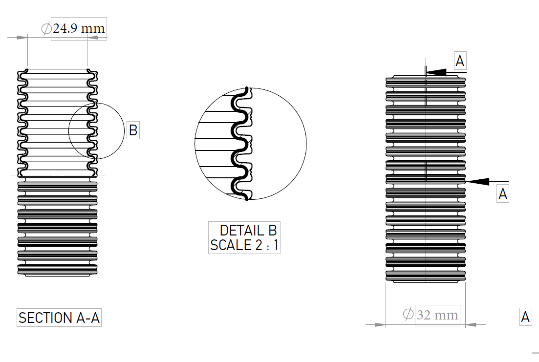 Tub copex flexibil cu trei straturi și strat metalic ISR integrat pentru cabluri electrice mari |