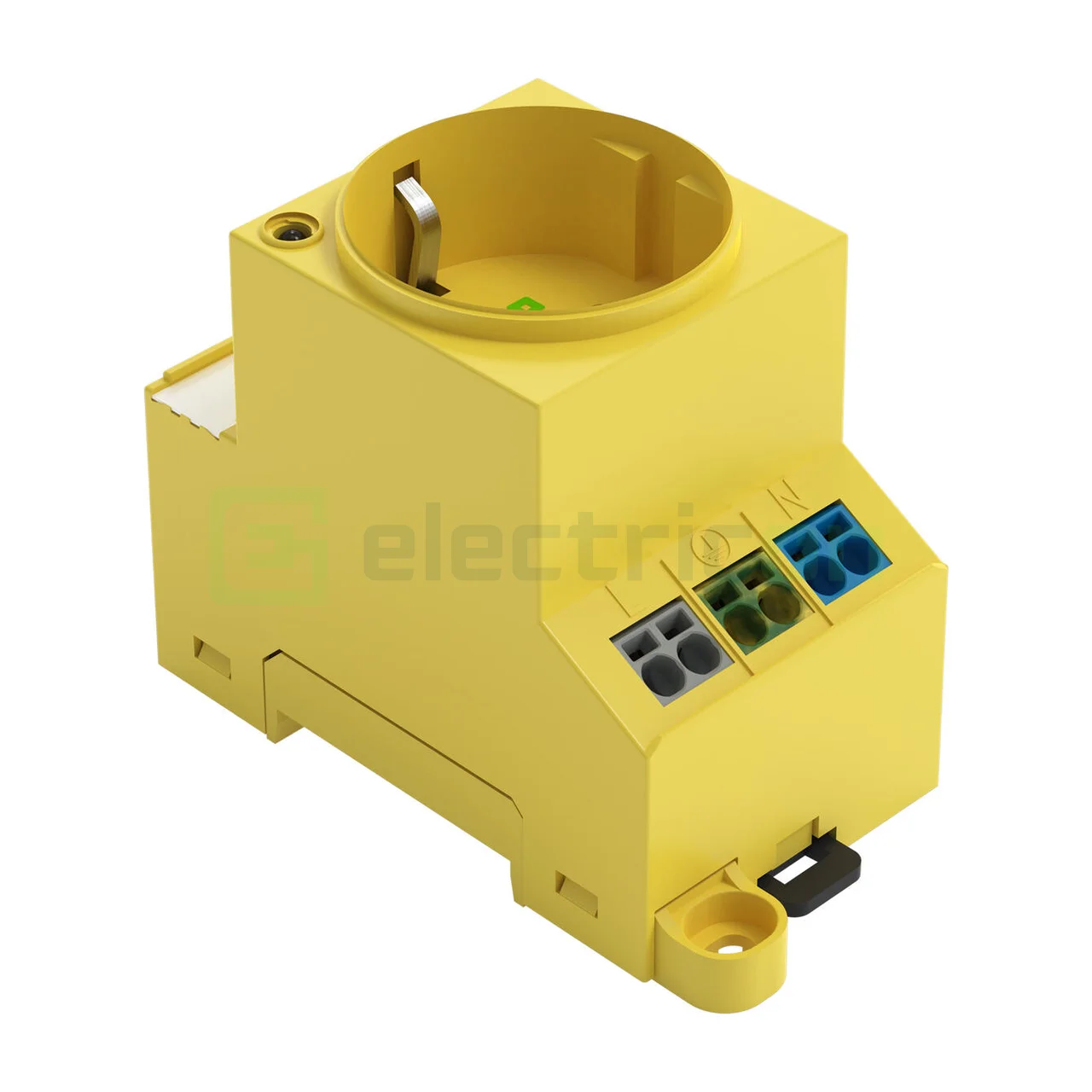 Priză dulap aparataj de comutaţie; pentru şină DIN şi montare cu şurub; pentru conector, tip F, CEE 7/4 (Schuko); obişnuit în DE, NL, AT; cu indicator de stare cu LED; cu conectare dublă Push-in Cage Clamp; galben intens