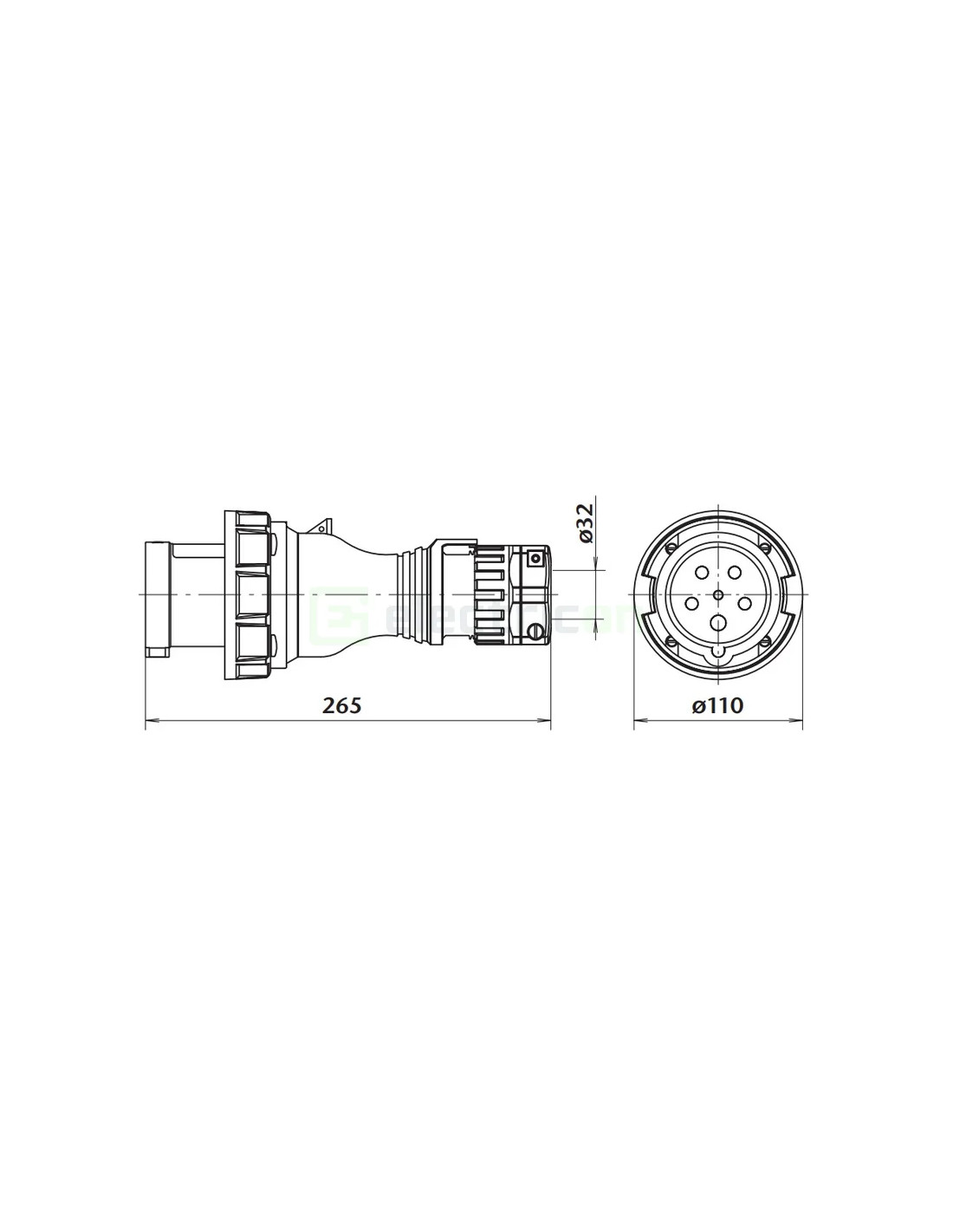 Priză - Industrială - mixtă (1xCEE + 1xSchuko) - 32A 400V - IP44 - Schrack - YY493432