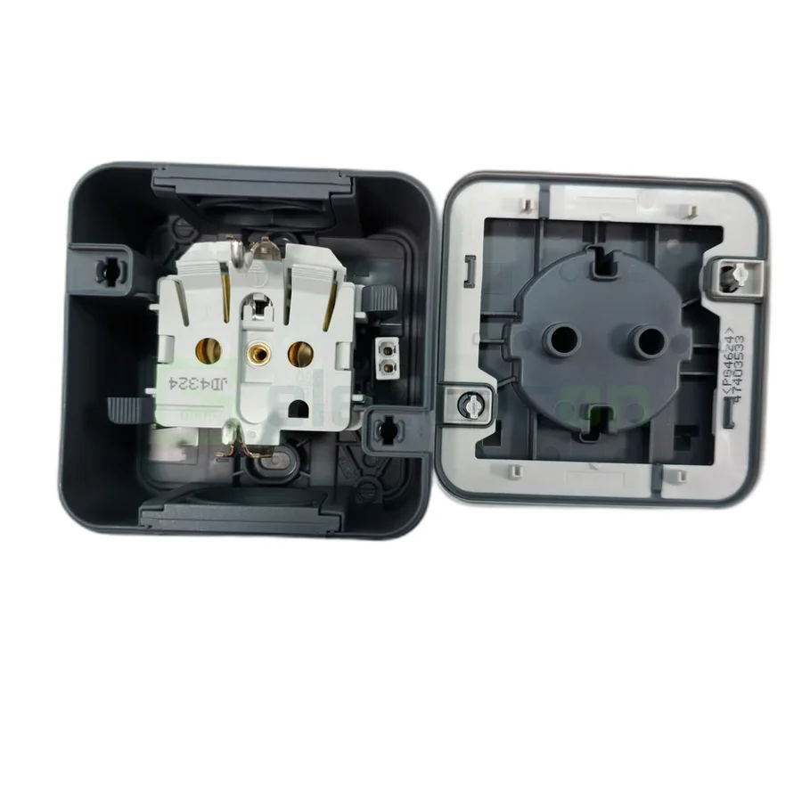 Berker by Hager Priză 2P+E, cu capac opac, aplicat, cu port etichetă și cheie, orizontală, IP55, Berker W1, Hager, 47393505