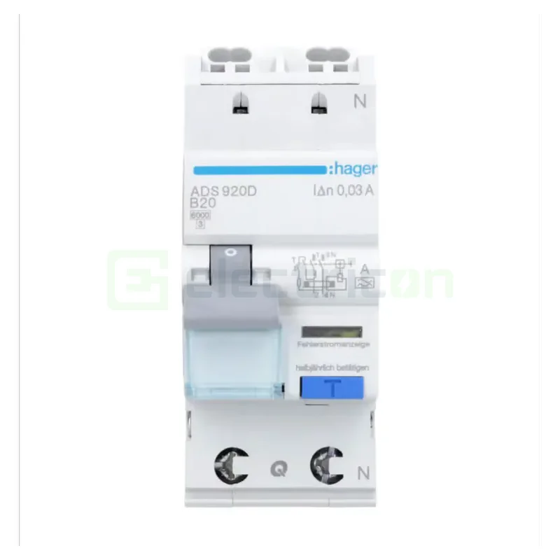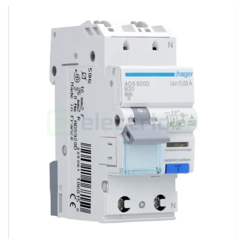 Hager Disjunctor diferential 1P+N, B 20A, 30mA, tip A, Hager, B, 6 kA, ADS920D