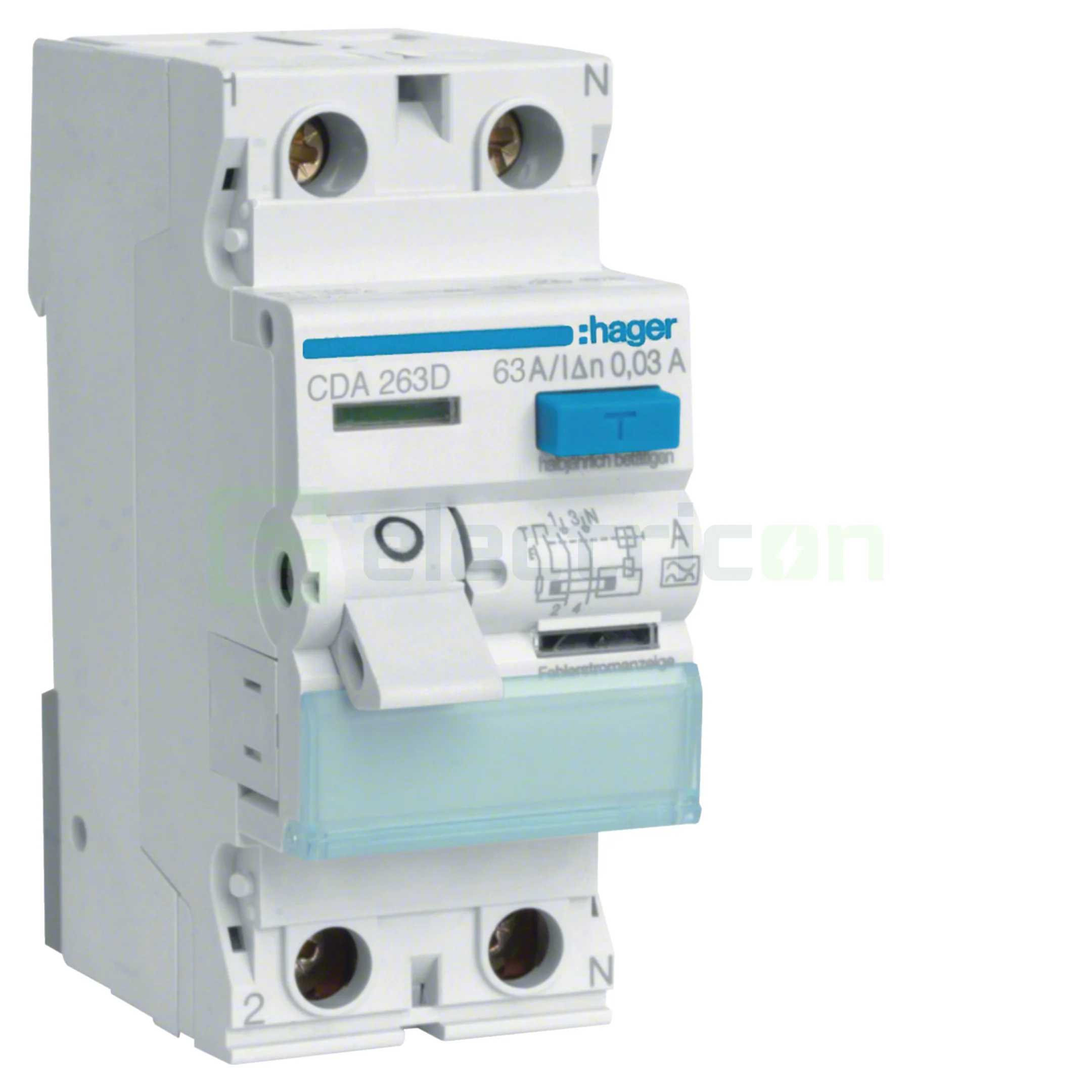 Hager Disjunctor diferential 2P, 6kA, 63A, 30mA, tip A, Hager,CDA263D