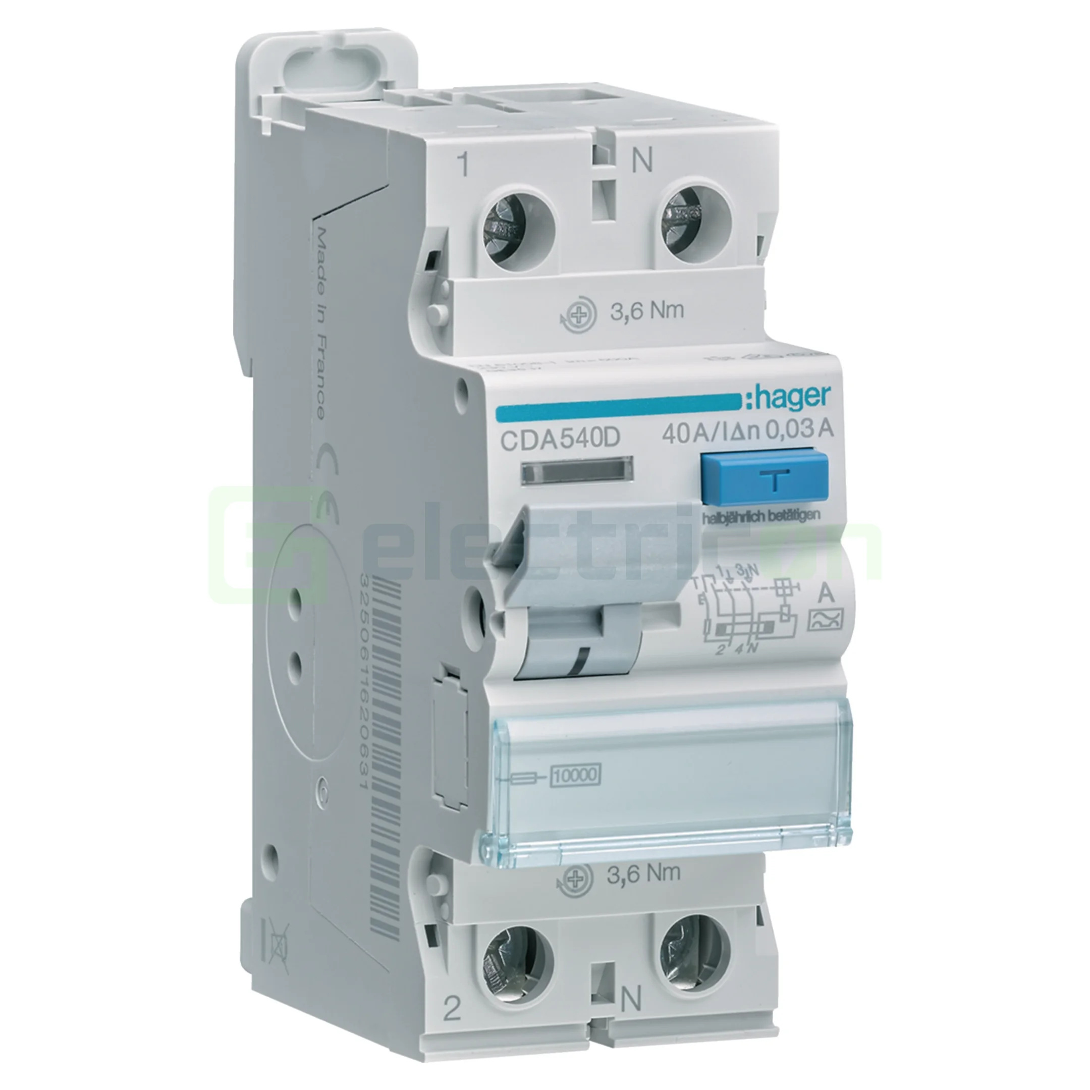 Întrerupător de curent rezidual 2 poli 10kA 40A 30mA tip A Întrerupător de curent rezidual (FI) conform DIN EN 61008-1 (VDE 0664-10), DIN EN 61008-2-1 (VDE 0664-11) cu terminale bi-conexiune în partea inferioară, buton extern de testare albastru și curent rezidual afişa. Potrivit pentru echipamente suplimentare. Borne de conectare cu protecție la introducerea firului, opțiune de etichetare direct pe dispozitiv.
