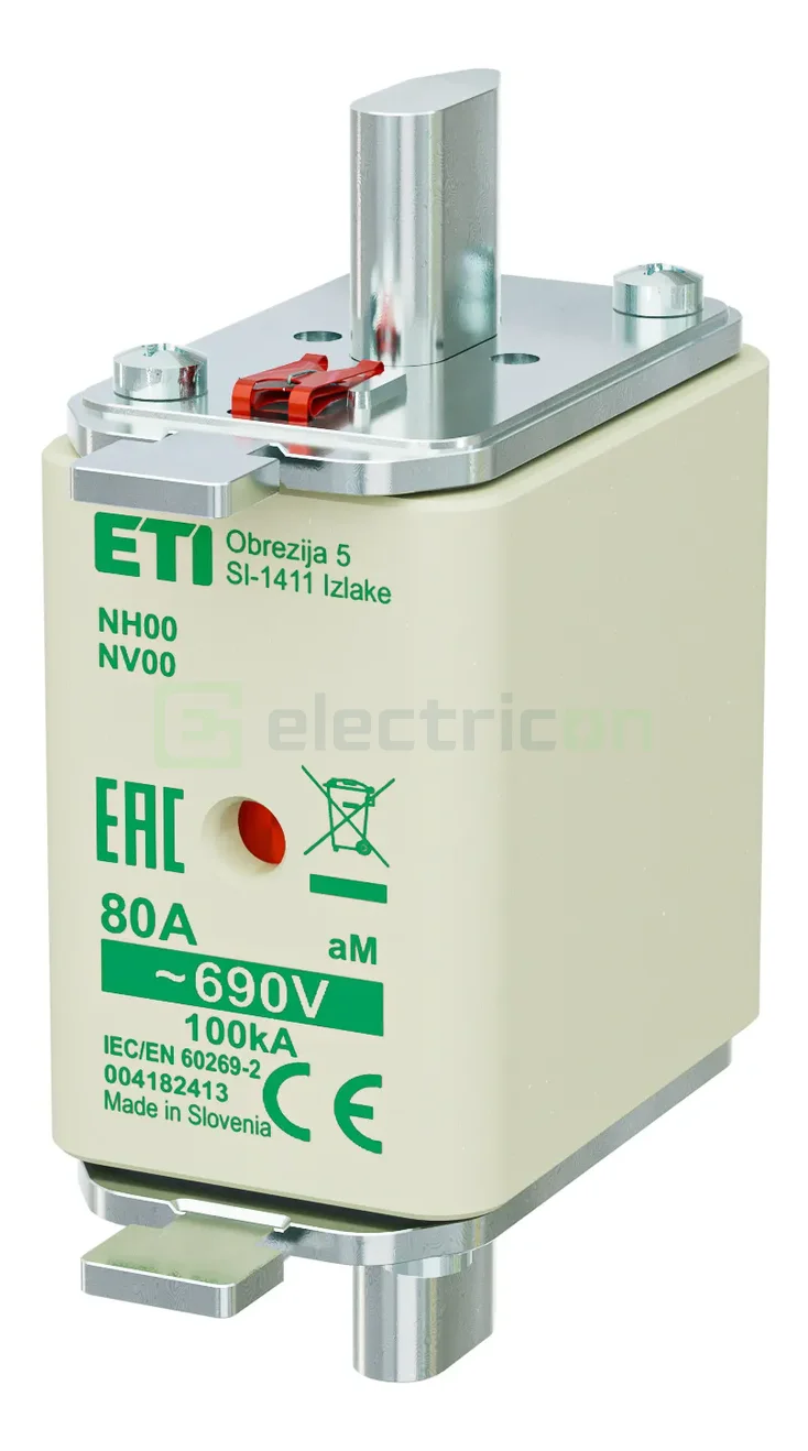 Siguranță Fuzibilă MPR fără Izolație, NH00, 80A/690V, 100kA, ETI, 004182413 – Protecție Maximă pentru Circuite de Putere.