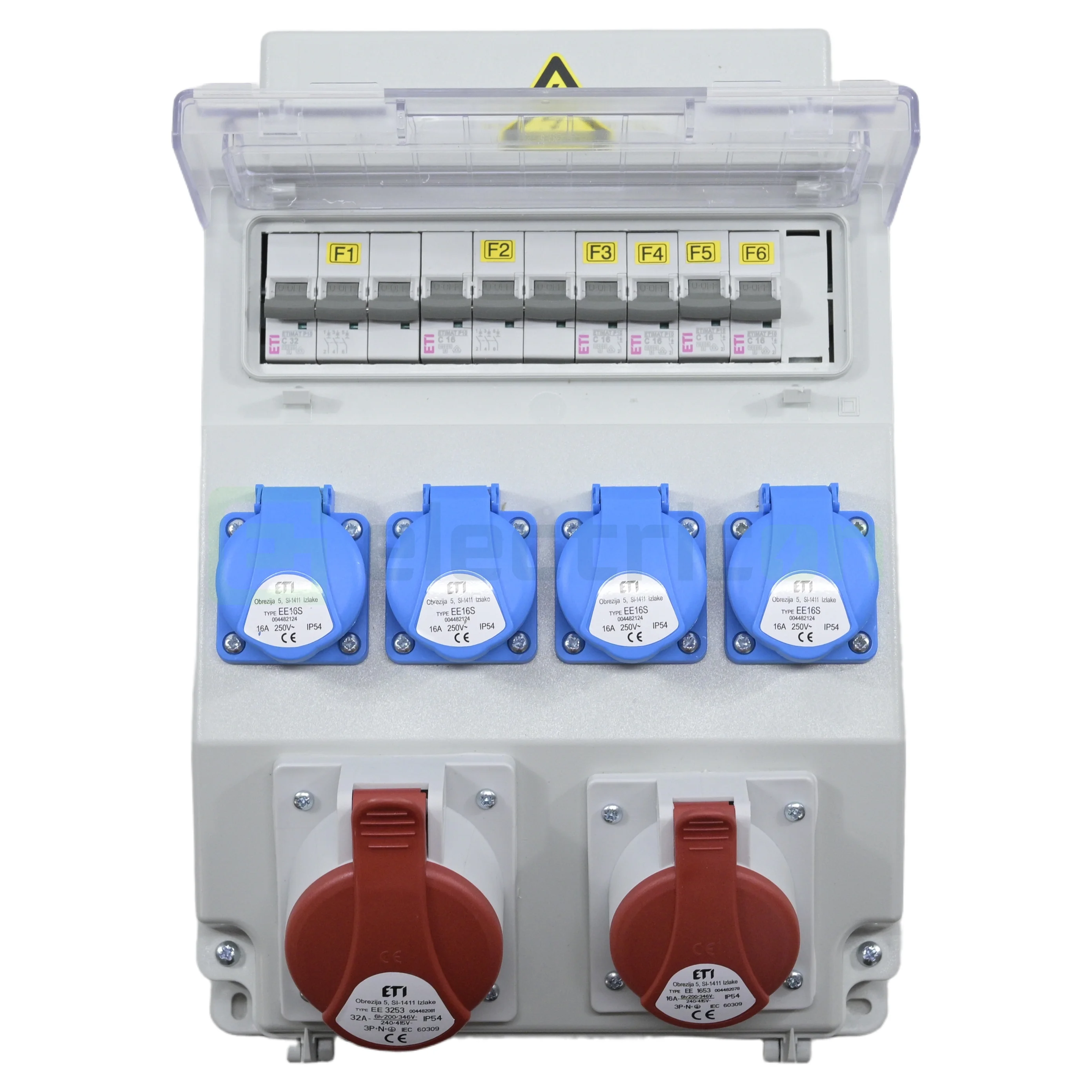 ETI Tablou organizare șantier trifazic/monofazic, 11 module, 4xShucko+2xCEE, IP54, 230/415V, 16/32A, ETI 004483302