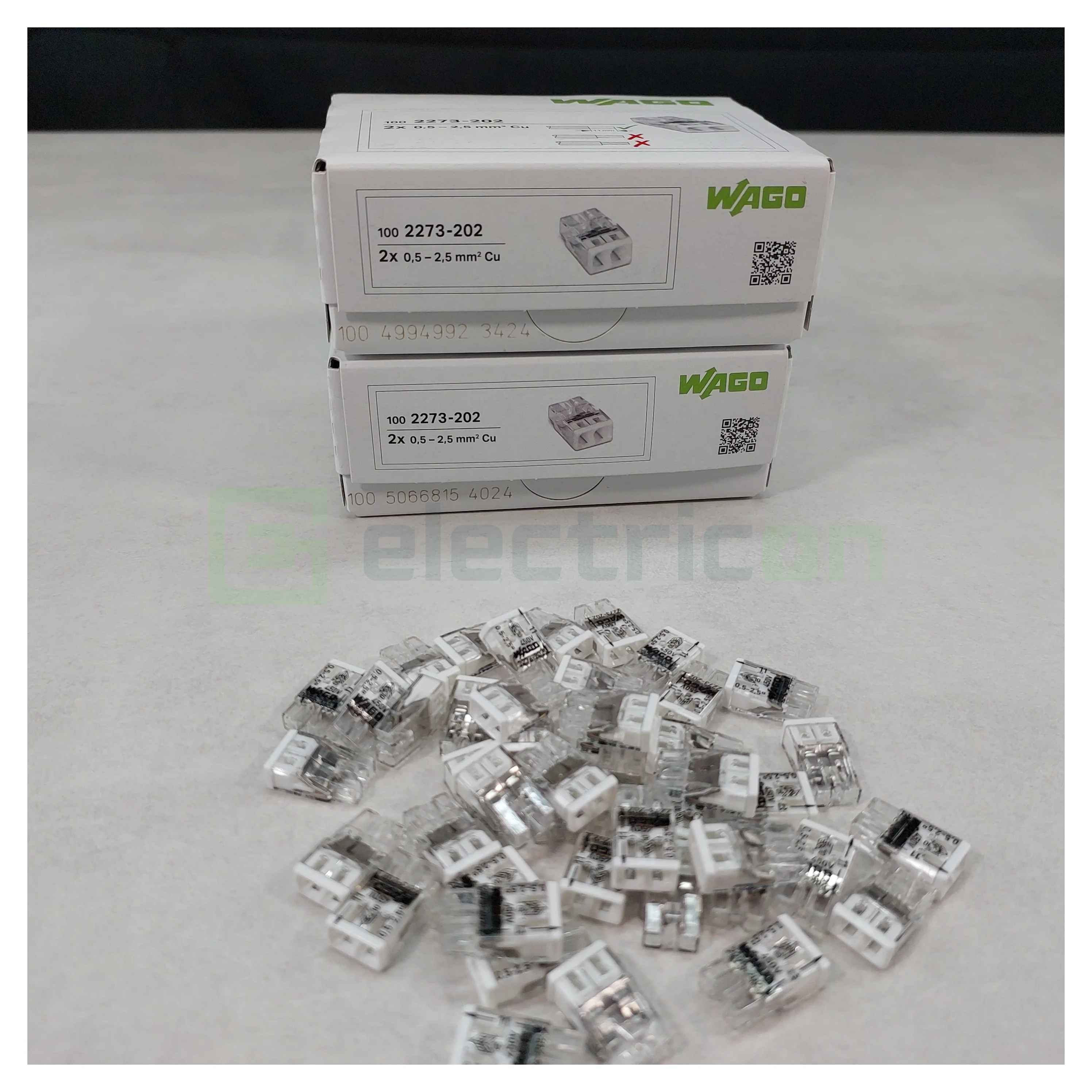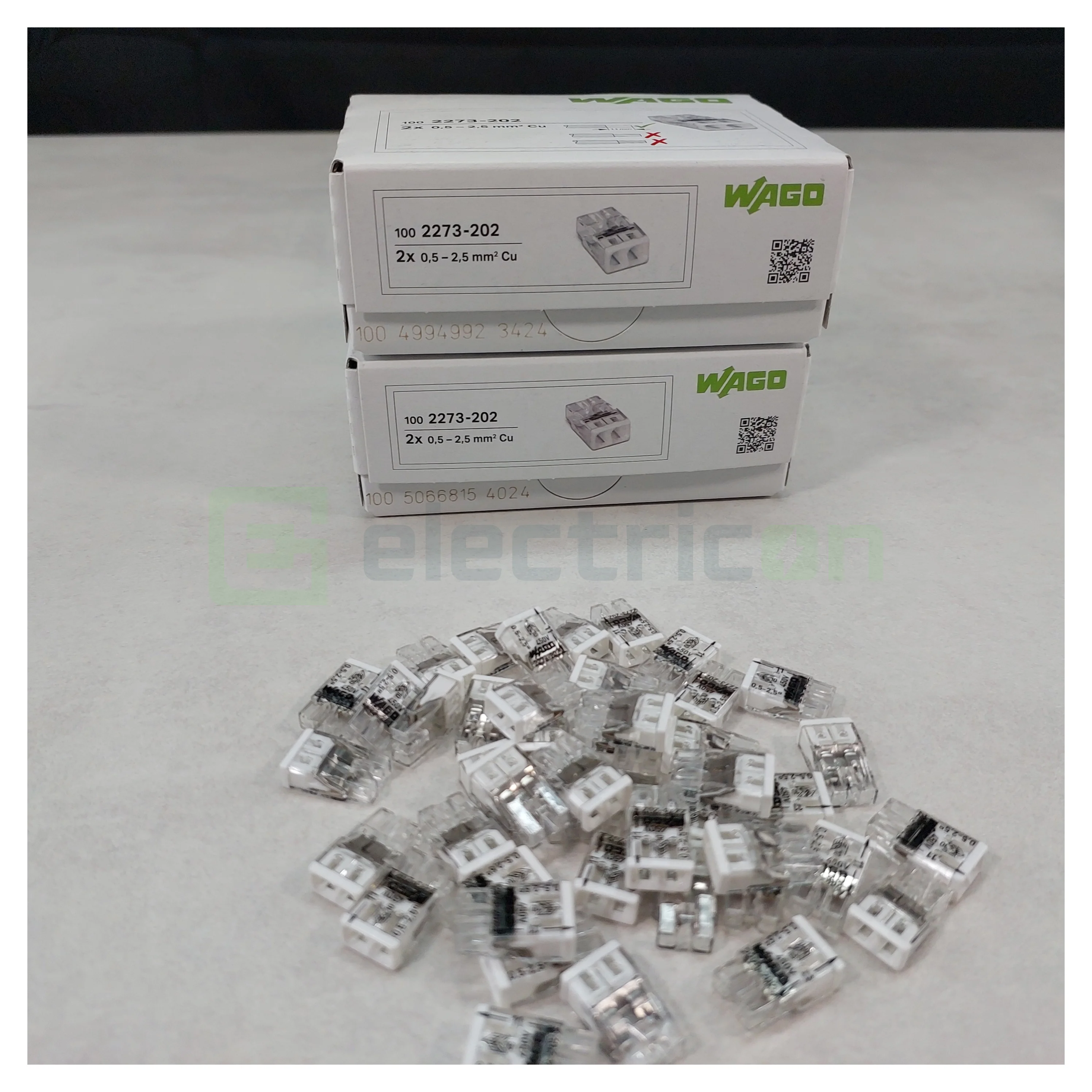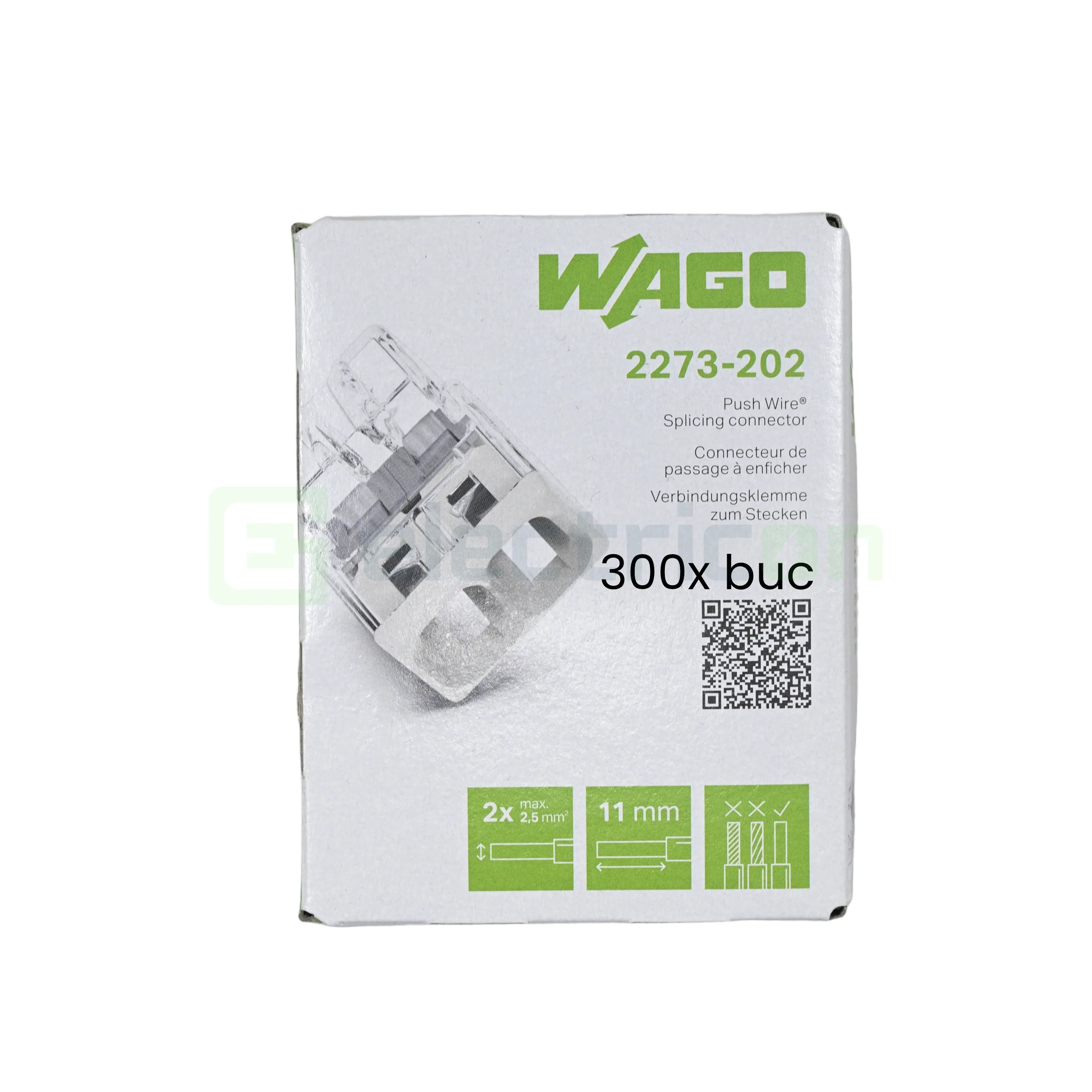 300 x Clemă legătură doză, 2 conductori 0,5 - 2,5mm², PUSH-Wire, Wago, 2273-202