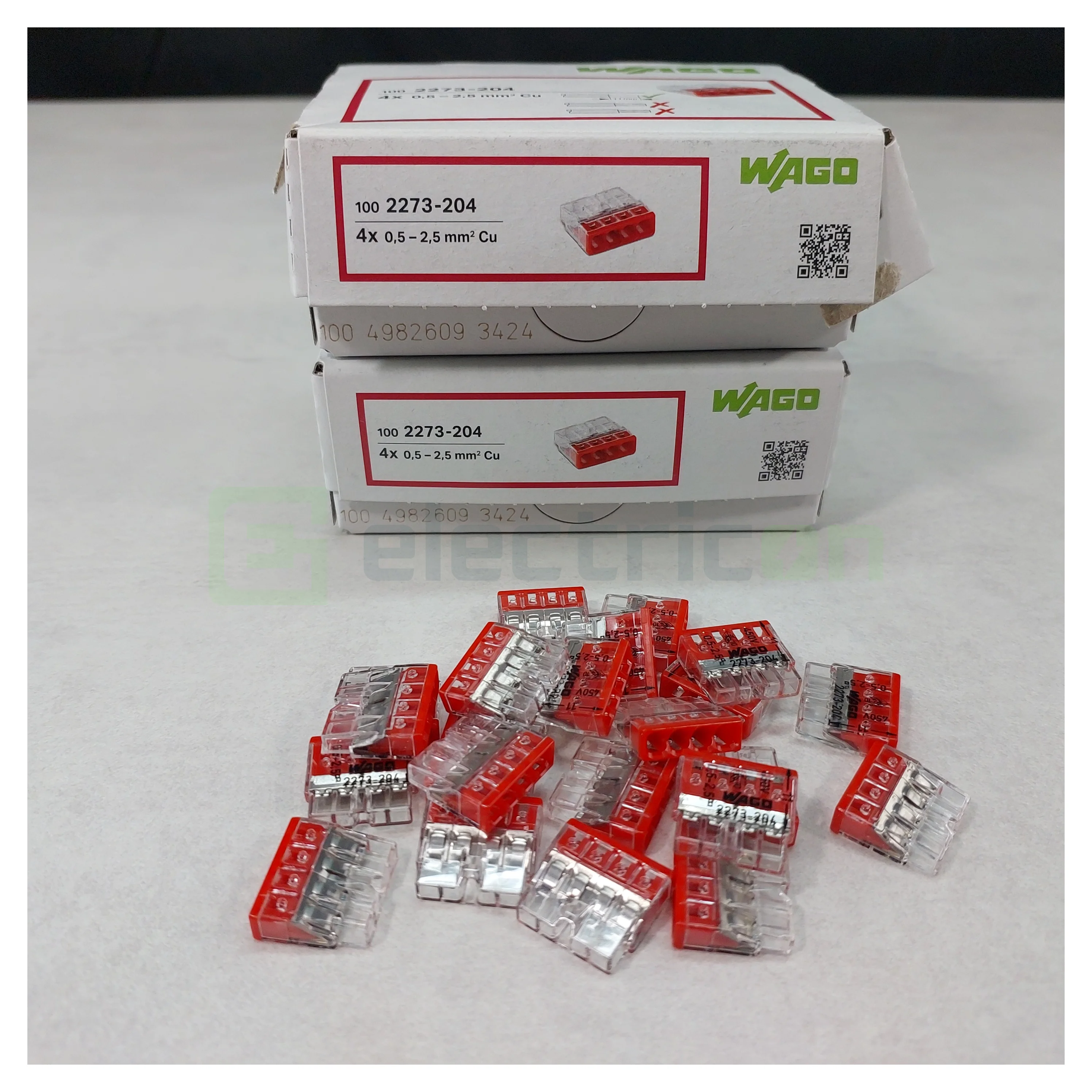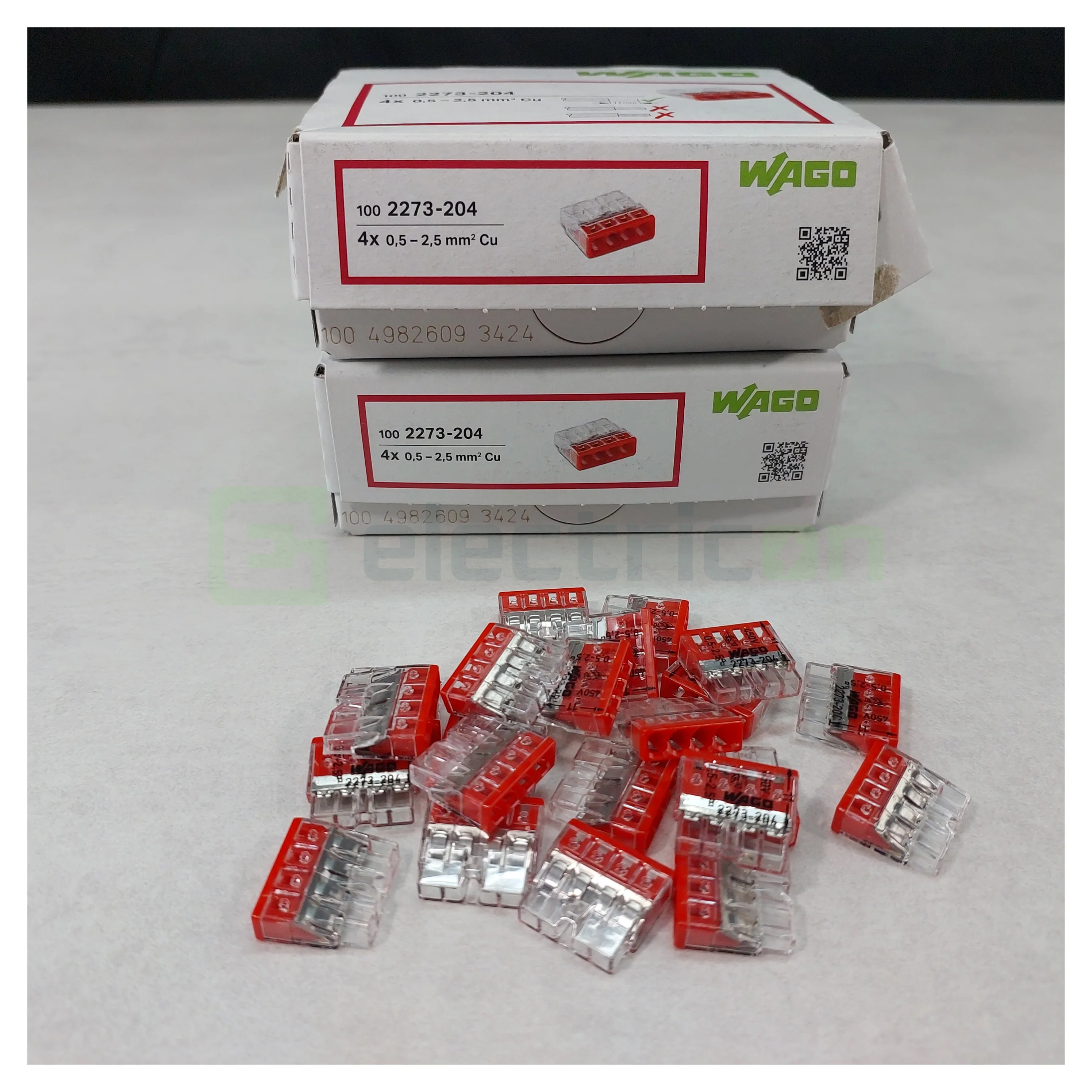 300 x Clemă legătură doză, 4 conductori, 0.5-2.5mm², PUSH-Wire, Wago, 2273-204