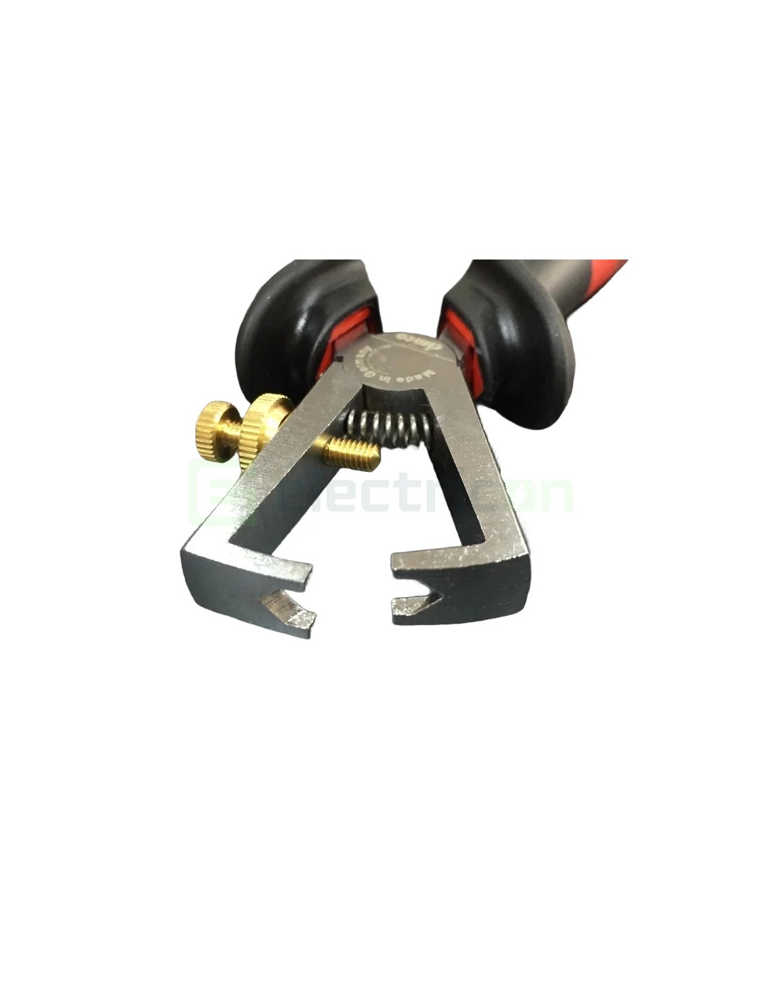 Clește de stripping 1.000 V, cu lungimea de 160 mm, dotat cu articulație inserată și șurub de reglare pentru setarea diametrului dorit al cablului sau firelor. Este destinat conductorilor solizi și multifilari cu diametru de până la 5 mmØ sau secțiuni de la 0.75 mm² până la 6 mm². Are o arcuri de deschidere internă pentru utilizare ușoară.