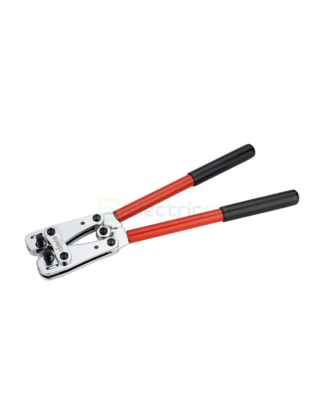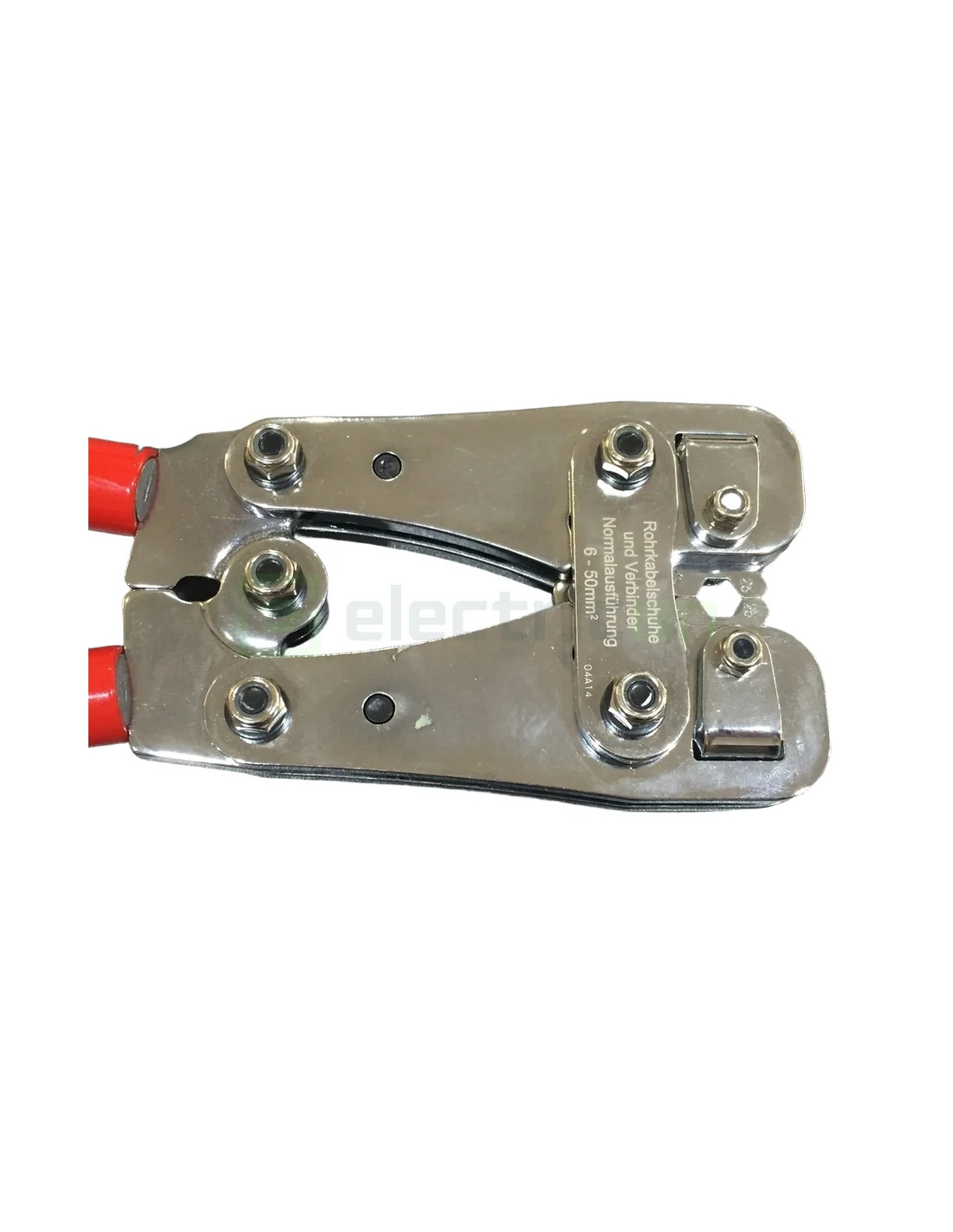 Clești de crimpare "versiune standard", pentru terminații tubulare de cabluri și conectori, cu crimpare hexagonală. Aceștia sunt echipați cu spătar profilat rotativ, au un domeniu de utilizare de 6 - 50 mm² și o lungime de 390 mm.