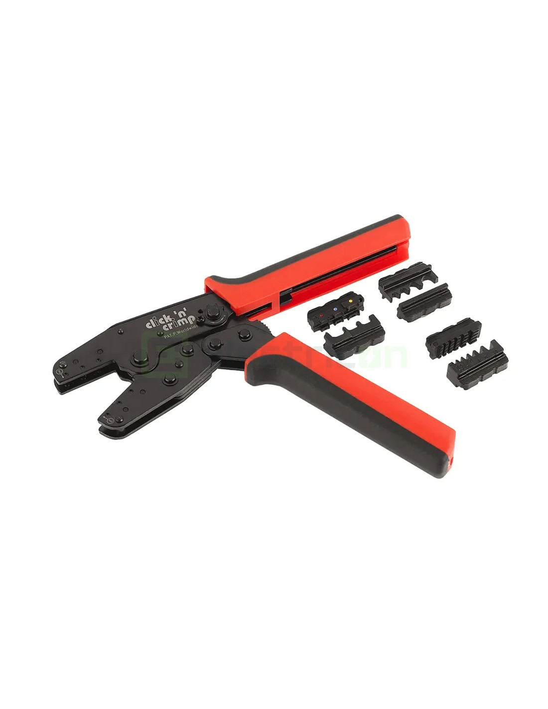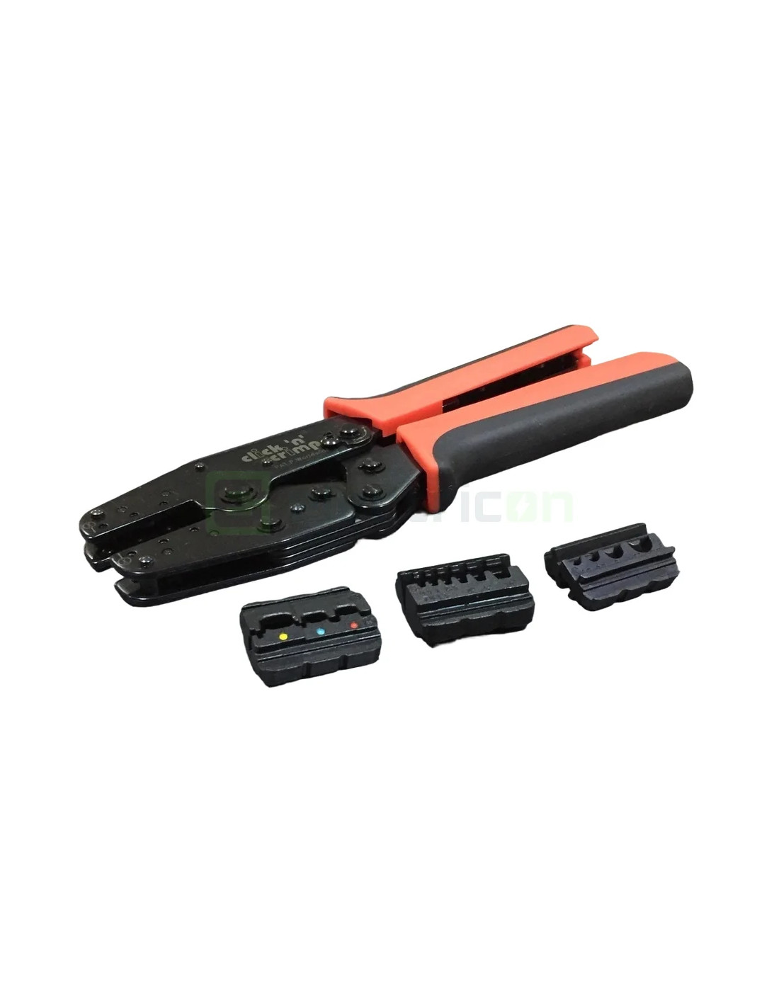 Pălărie de crimpare Click'n'Crimp, tehnologie electrică, cu profile de crimpare interschimbabile, fixate în corpul plăcii printr-un suport de tip snap-in. Permite schimbarea rapidă a profilurilor fără unelte suplimentare. Două profiluri de crimpare sunt stocate în magazinele integrate de pe picioarele plăcii. Corpul plăcii este fabricat din oțel special tratat termic, iar mecanismul de ratchet ajustabil asigură o presiune de crimpare conformă standardelor. Mânerele sunt ergonomice, din două componente, iar greutatea totală cu 3 profile de crimpare este de 690 g. Include profilele de crimpare cu numerele de articol 106010 (pentru capete de cablu neizolate de la 0.5 mm² la 10 mm²), 106011 (pentru capete de cablu neizolate de la 0.5 mm² la 10 mm²) și 106012 (pentru ferrule de cablu de la 0.5 mm² la 10 mm²).
