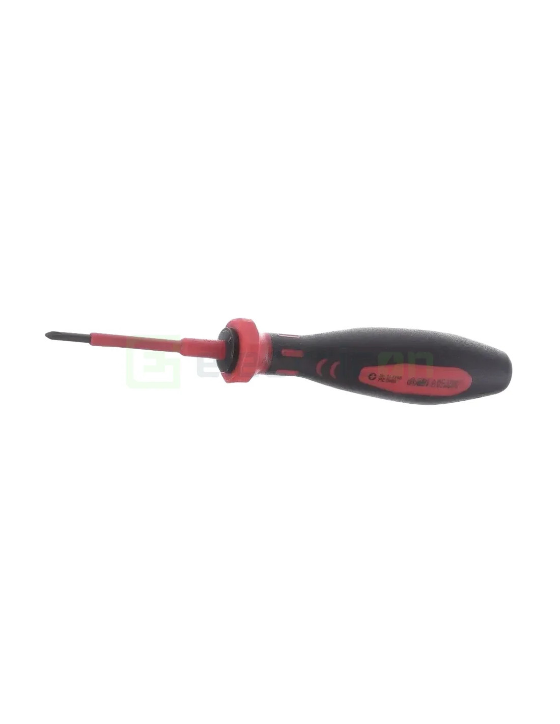 "Șurubelniță Phillips VDE cu izolație de 1,000 V, conform DIN EN 60900, clasificată VDE 0682, partea 201, și DIN ISO 8764. Această șurubelniță cu tăietură în cruce are dimensiunea PZ0 x 60 mm și o lungime totală de 260 mm. A fost testată într-o baie de apă cu o tensiune de testare de 10,000 volți, asigurându-se astfel fiabilitatea și siguranța sa."
